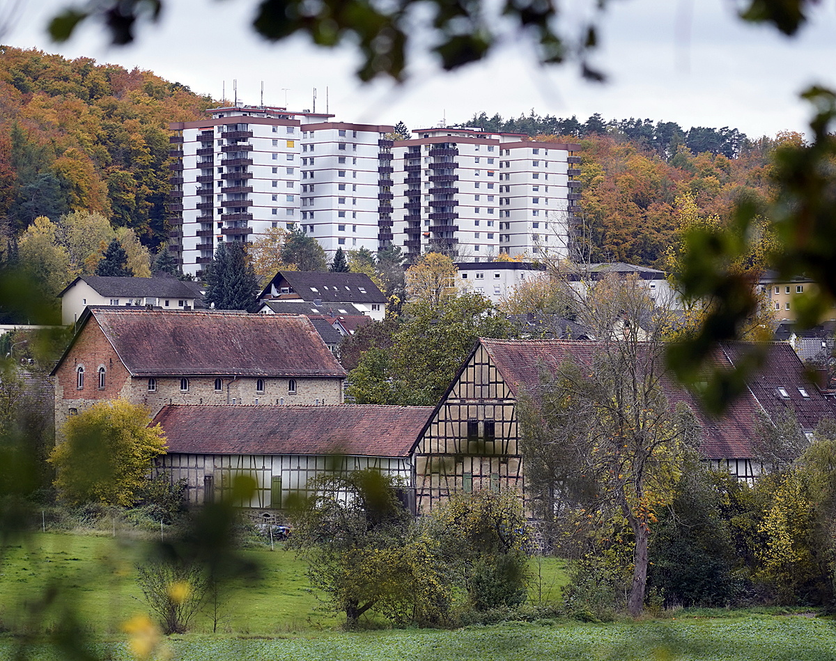 - Die Großen-Busecker Hochhäuser und im Hintergrund der